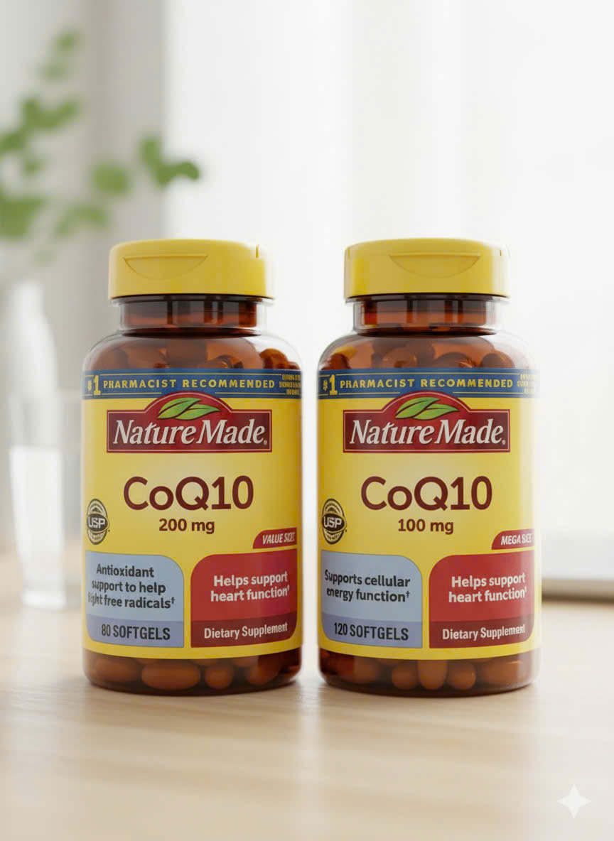 Nature Made CoQ10 200mg là sản phẩm bổ sung Coenzyme Q10 dạng softgel dễ hấp thu, thuộc nhóm bán cực chạy tại Mỹ. CoQ10 là hợp chất tự nhiên có trong cơ thể, đóng vai trò quan trọng trong việc tạo năng lượng cho tế bào, đặc biệt là các cơ quan hoạt động mạnh như tim, não và cơ bắp.